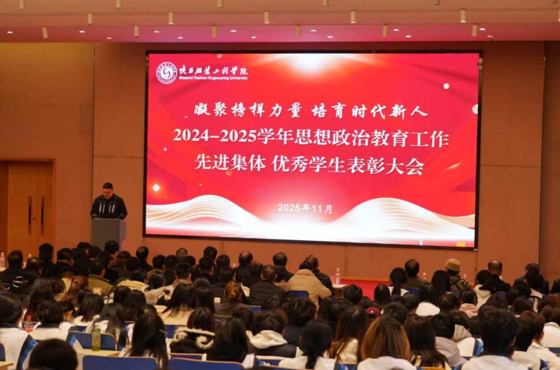 陕服新闻网讯(张维峰)11月26日,陕西服装工程学院“凝聚榜样力量 培育时代新人”2024-2025学年思想政治教育工作先进集体与优秀学生表彰大会在E1-4报告厅举行。校长姜寿山、党委书记王岗,及校领导黄新民、潘庆才、唐明晰、刘运、刘继兵、罗文谦、李钊等出席大会。各学院党政负责人、各职能部门负责同志、学工办主任、全体辅导员及学生代表参加,大会由学工部副部长董良超主持。表彰仪式在庄严的国歌声中拉开帷幕。与会师生共同观看了2025年学生工作巡礼视频,...