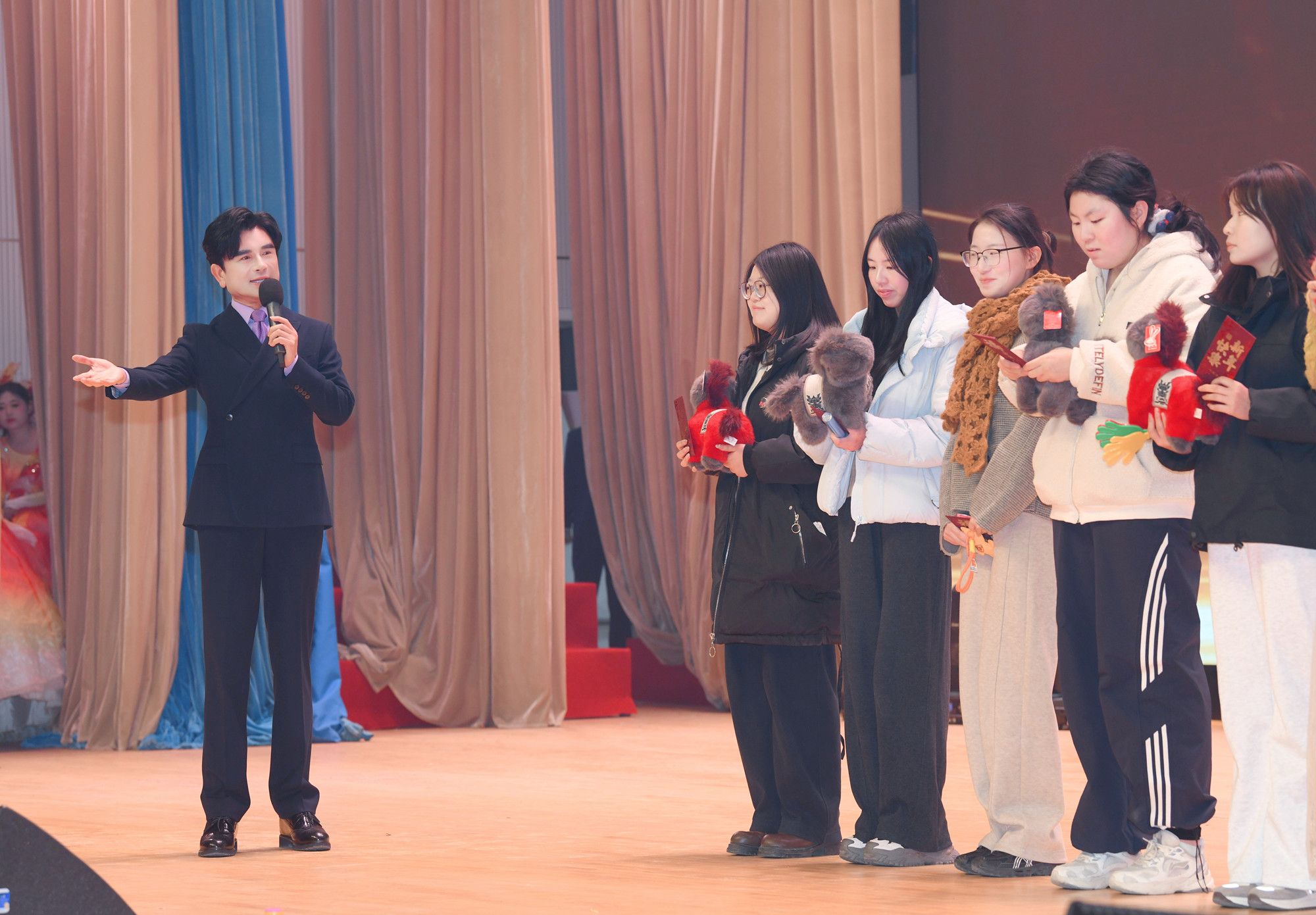 老师们,同学们,让我们携手并肩,在2026年:拥抱健康,用踏实的行动治愈焦虑;奔赴成长,在时代的浪潮中超越自我;收获幸福,以不懈的奋斗积淀喜悦;点亮梦想,在崭新的征程共赴圆满!让我们一起迎接2026,迎接属于我们的奔腾时代!最后,预祝大家新年快乐!谢谢大家!