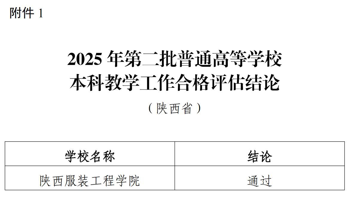 陕服新闻网讯(党委宣传部)近日,教育部办公厅印发《关于下达2025年第二批普通高等学校本科教学工作合格评估结果的通知》(教督厅函〔2026〕8号),经教育部高等教育评估评价专家委员会审议,我校本科教学工作合格评估结论为“通过”。学校顺利通过本科教学工作合格评估,是教育部、省委教育工委、省教育厅正确领导、悉心指导和大力支持的结果;是学校董事会、党政领导班子和全体师生员工团结一心、攻坚克难、共同奋斗、无私奉献的结果;...