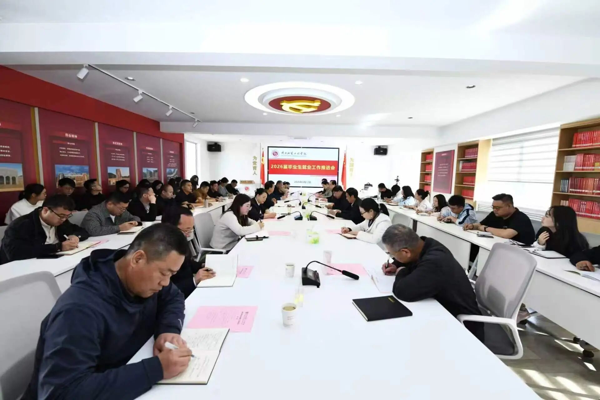 陕服新闻网讯(就业办)4月17日,我校召开2026届毕业生就业工作推进会,深入贯彻落实全省高校毕业生就业工作会议及相关文件精神,分析当前形势,部署攻坚任务,动员全校力量抢抓就业工作关键冲刺期,全力促进2026届毕业生更充分、更高质量就业。校党委书记王岗、副校长潘庆才出席会议并讲话,党委副书记刘继兵主持会议并作工作部署。各相关职能部门负责人、各学院党政负责人及全体毕业班辅导员参加会议。